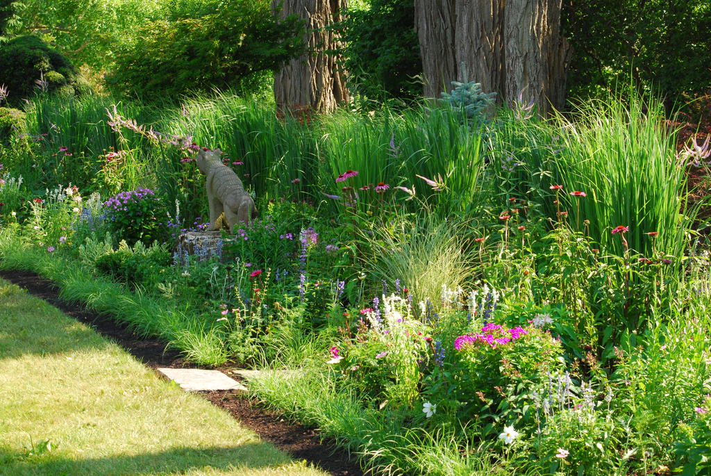 Shapes, colors and textures were chosen to evoke impressionist paintings. The variety of grasses often shimmer as the light changes during the day.